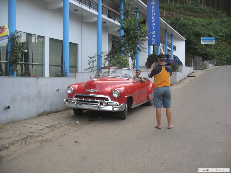 Unser „Aufenthalt“ bei der Garage nutzten viele um Bilder zu machen und Fragen zu stellen. Gerne standen wir Red‘ und Antwort. Während ich mich um Conrad’s Auto kümmerte nutzte ein lokaler Journalist die Gelegenheit und machte Bilder und stellte Petra tausende von Fragen. Penibel schrieb er jede Antwort auf, machte sich Notizen zur Strecke, zum Auto, zu Petra. Vielleicht schaffen es so Petra und der Chevy auf die Titelseite der Munnar Post oder Munnar Tribune oder aber Munnar Neue Zeitung.