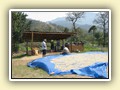 Der erste Tag der Rally ohne Auto. Abgeschieden von der Welt erwarteten wir schon einen etwas langweiligen Tag. Zuerst genossen wir das Frühstück, hielten hier und dort einen kleinen Schwatz. Dann wollten wir zu Fuss die Umgebung etwas erkunden als uns ein Mitarbeiter der Ökofarm abfing. Dann wurde es wirklich interessant. Er zeigte uns zuerst die Biogärten, wie neue Beete angelegt wurden, wo was wuchs und erklärte den ganzen Ablauf. Dann waren die Pferdestallungen dran. Naja, nicht so Stallungen wie wir es uns gewohnt sind. Vielmehr gedeckte Unterstände, auf allen Seiten offen. Ausser zwei älteren Pferden sahen alle sehr gut, gepflegt, gut genährt und gesund aus. Die zwei Älteren werden wohl etwas vernachlässigt, oder sie sind wirklich einfach sehr alt…