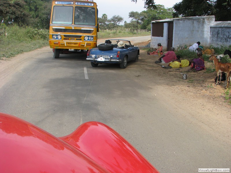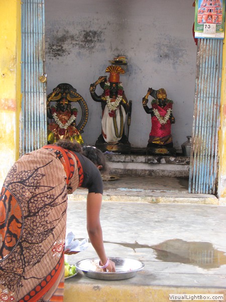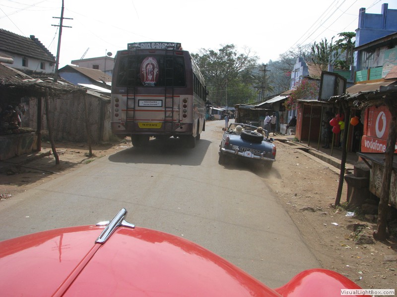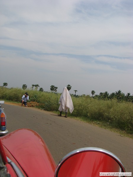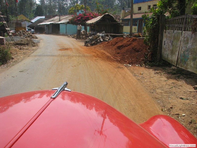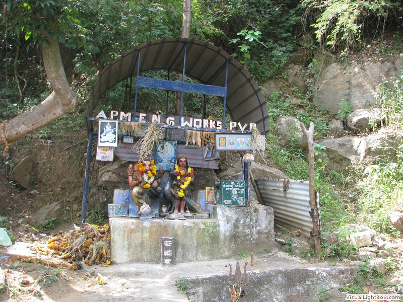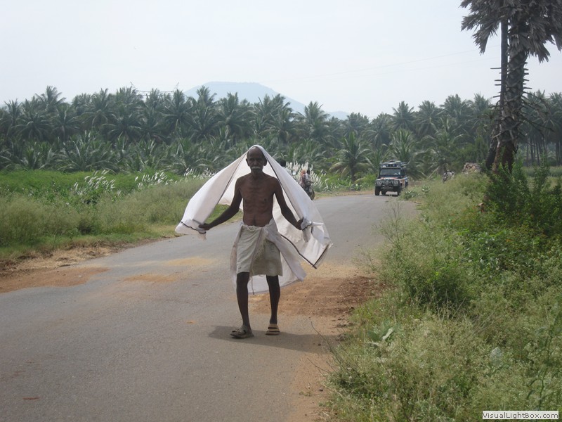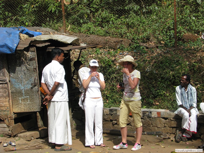 Eine wunderbare Fahrt heute! Vom Elephant Valley ging’s erstmal wieder bergab. Kurvenreich, steil, eng und mit fantastischer Aussicht. Der Zustand der Strasse war auch gut, alles friedlich. In der Ebene konnte ich mich etwas von der Kurvenfahrt erholen während jetzt Petra mit der Navigation gefragt war. Sie meisterte dies mit Bravour! Unterwegs hielten wir verschiedentlich für Tchai-Stopps an und sogar für einen Tempel. Als wir diesen betraten kam uns schon der Priester entgegen und führte uns durch, erklärte welche Gottheiten hier wohnten und segnete uns sogar. Natürlich hat das ein paar Rupien gekostet, aber was macht man nicht alles für einen Segen. Ein lustiges Details zum Priester: er war ganz traditionell gekleidet, mit freiem Oberkörper, doch in seinem Bund steckte ein Handy. Da trifft die Moderne auf die Vergangenheit.