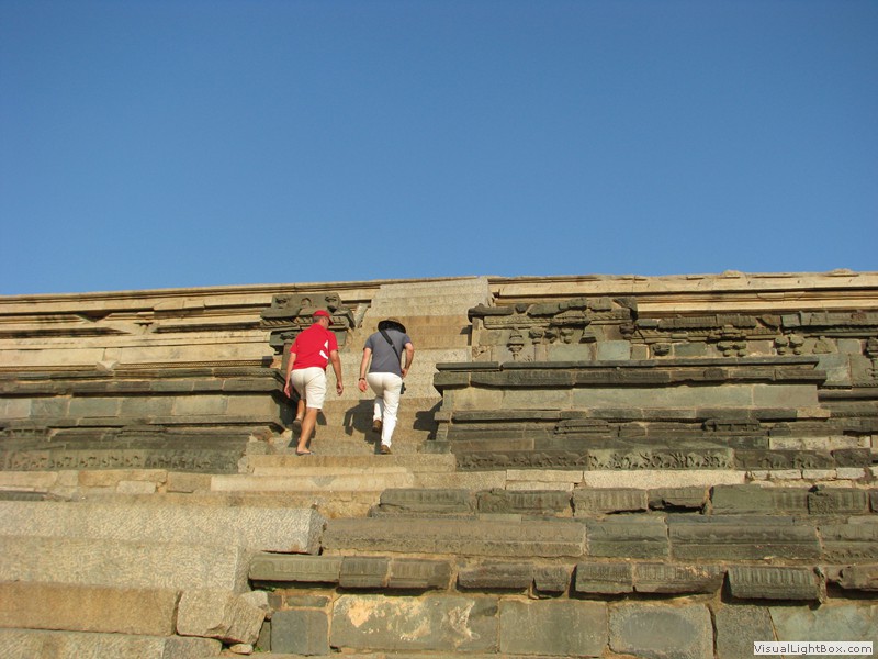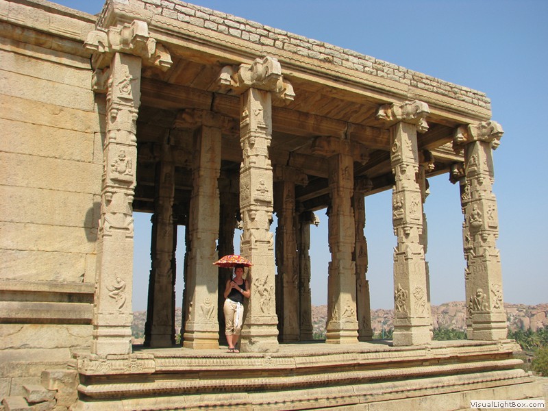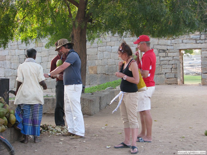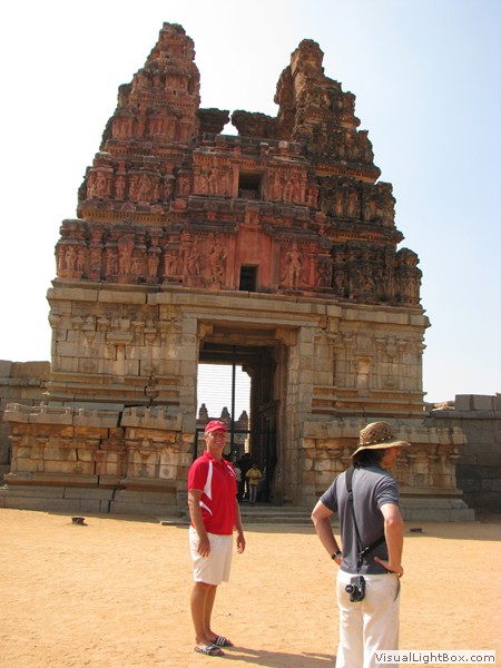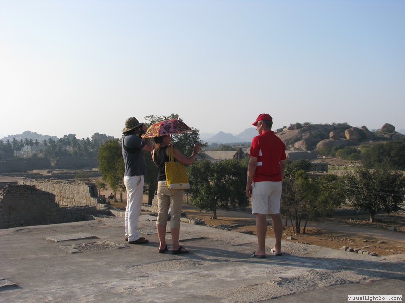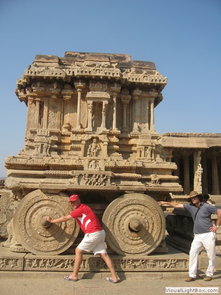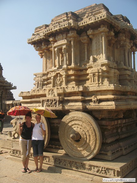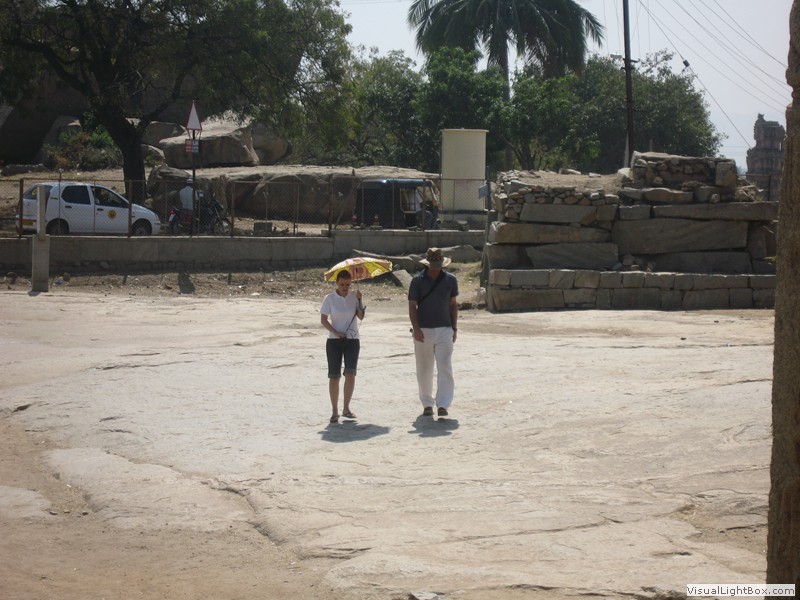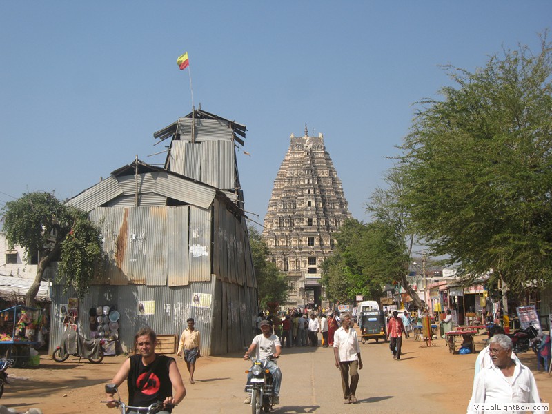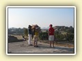 Heute liessen wir es locker angehen. Nach einer erholsamen Nacht fing der Tag mit einem einfachen Frühstück an. Dann wurden Pläne für den Tag geschmiedet und wir entschieden uns einen Tempeltag zu machen. Hampi ist da sehr ergiebig! Es gibt über 2000 Tempel und Paläste in der Grösse. Natürlich konnten wir nicht alle besuchen, so konzentrierten wir und auf die Wichtigsten. Wir heuerten einen Führer an dessen englisch man verstehen konnte. Dies ist hier in Indien manchmal ein Problem. Sie könnten zwar englisch, sprich die Wortwahl etc aber die Aussprache lässt es dann zum Teil zu einer Sprache mutieren die wir nicht verstehen. Aber wie geschrieben, wir hatten das Glück einen gefunden zu haben den man verstand. Ich war ja schon mal hier und hatte einige Tempel und Paläste gesehen. Aber mit dem Führer ist das nochmals was ganz anderes. Geschichtliche Hintergründe liessen uns die Zusammenhänge erkennen. Zum Beispiel waren in fast allen Tempeln die Statuen beschädigt. Dies sind nicht Zeichen der Zeit, sondern des Vandalismus. Nachdem die Muslime hier eingefallen waren haben sie sämtliche Statuen beschädigt. Nur beschädigt, nicht zerstört. Der Grund ist der, dass die Hindu, sobald eine Statue beschädigt ist, diese nicht mehr anbeten, weil sie durch die Beschädigung ihre Kraft verliert. Auch wurden von den Muslimen sämtliche Gebäude niedergebrannt so dass man nur erahnen kann in welcher Pracht sich diese Stadt einmal offenbart hat. Heute leben hier etwa 3000 Menschen. Doch in ihrer Blütezeit lebten hier bis zu 500‘000 Menschen!!