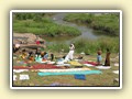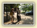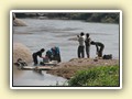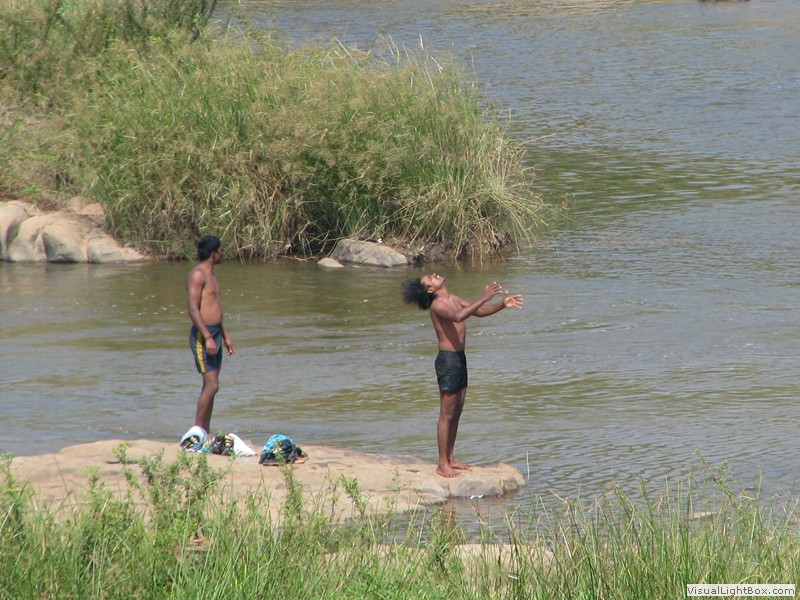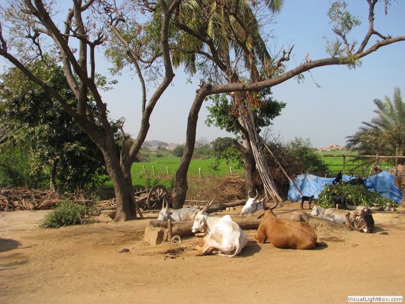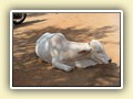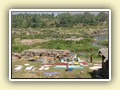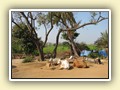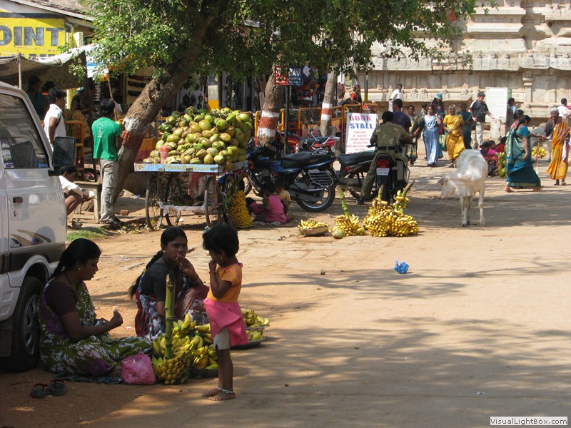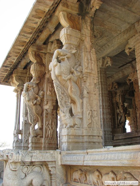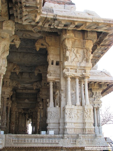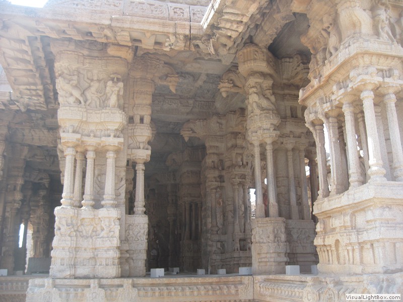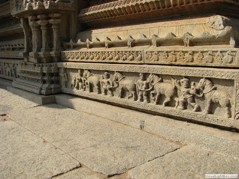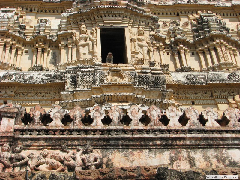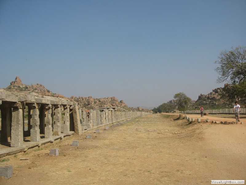 Heute liessen wir es locker angehen. Nach einer erholsamen Nacht fing der Tag mit einem einfachen Frühstück an. Dann wurden Pläne für den Tag geschmiedet und wir entschieden uns einen Tempeltag zu machen. Hampi ist da sehr ergiebig! Es gibt über 2000 Tempel und Paläste in der Grösse. Natürlich konnten wir nicht alle besuchen, so konzentrierten wir und auf die Wichtigsten. Wir heuerten einen Führer an dessen englisch man verstehen konnte. Dies ist hier in Indien manchmal ein Problem. Sie könnten zwar englisch, sprich die Wortwahl etc aber die Aussprache lässt es dann zum Teil zu einer Sprache mutieren die wir nicht verstehen. Aber wie geschrieben, wir hatten das Glück einen gefunden zu haben den man verstand. Ich war ja schon mal hier und hatte einige Tempel und Paläste gesehen. Aber mit dem Führer ist das nochmals was ganz anderes. Geschichtliche Hintergründe liessen uns die Zusammenhänge erkennen. Zum Beispiel waren in fast allen Tempeln die Statuen beschädigt. Dies sind nicht Zeichen der Zeit, sondern des Vandalismus. Nachdem die Muslime hier eingefallen waren haben sie sämtliche Statuen beschädigt. Nur beschädigt, nicht zerstört. Der Grund ist der, dass die Hindu, sobald eine Statue beschädigt ist, diese nicht mehr anbeten, weil sie durch die Beschädigung ihre Kraft verliert. Auch wurden von den Muslimen sämtliche Gebäude niedergebrannt so dass man nur erahnen kann in welcher Pracht sich diese Stadt einmal offenbart hat. Heute leben hier etwa 3000 Menschen. Doch in ihrer Blütezeit lebten hier bis zu 500‘000 Menschen!!