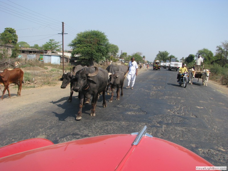 Um 6 Uhr klingelte der Wecker, wir wollten nur weg hier. Eine halbe Stunde später sassen wir schon in den Autos und fuhren los. Es ging zügig voran, die Strassen nicht überfüllt, der Zustand jener war aber schlecht. Nirmal war hinter uns und mit jedem Meter den wir zurücklegten wurde es uns wohler. Dies sollte allerdings nicht lange anhalten. Es gab einen Unfall und Conrad war darin verwickelt. Ein Motorradfahrer schnitt die Kurve und knallte mit voller Wucht in den linken Kotflügel es MG. Die Passagiere des Motorrades machten einen Abflug, Conrad und Karyn kamen mit dem Schrecken davon. Und jetzt begann das Theater. Sofort haben sie Conrad und Karyn um die beiden gekümmert. Sie waren zum Glück nicht sehr verletzt, was sehr erstaunt, trugen sie beide keinen Helm, geschweige denn irgendwelche Protektoren, nur Flipflops. Doch sie witterten Geld!!! Ich fuhr die beiden in eine kleine Unfallstation. Dort gab man ihnen eine Tetanusspritze und schickte sie zum Röntgen ins Spital. Wären die mit einem Einheimischen zusammengestossen wären die wohl nie ins Spital geschickt worden. Naja, ok, so kam es, dass ich sie auch noch ins Spital führte. Karyn war natürlich immer dabei. Im Spital ging es jedoch los. Da kam der Bruder, der Onkel, der Cousin und wer weiss noch wer alles vorbei. Das Geschrei ging nun los. Wir wurden umzingelt, ich konnte nicht mehr rausfahren. Es drohte aus den Fugen zu geraten. Die Inder haben eine Mob-Mentalität!!! Es ist wirklich erstaunlich, sollten sie doch wissen dass wenn sie wie Idioten fahren dass mal was passieren wird. Doch hier ging‘s um Geld, um nichts anderes. Wir riefen die Polizei zu Hilfe. Es kamen etwa acht Polizisten und es gab ein Gedränge, wildes Fuchteln mit den Händen, Geschrei, fast ein Aufruhr. Wir sagten, wollten zum Polizeiposten fahren. Die Polizei willigte ein, auch der Mob schien befriedigt zu sein. Ich wurde auch freigelassen. So fuhren wir los. Keiner von uns hatte jedoch im Sinn den Polizeiposten anzufahren. So fuhren wir schnurstracks aus der Stadt hinaus! Das ging erstaunlich gut, bis zur Barriere… Als die uns kommen sahen senkte sich der Mast, hier gab es kein Durchkommen. Karyn sprang dann sofort aus dem Auto raus und fragte, ob die Polizei kommen würde. Als diese bejahten sagte sie, super, das ist gut so. wir wollten nur der Menge entkommen. Uns schickte man weiter, da wir ja nichts mit dem Unfall zu tun hatten. Ungern fuhren wir weiter, doch wenn der Mob herkommen würde, dann wäre es sehr ungemütlich!!!