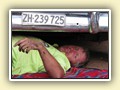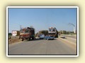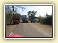 Oje, fünf Uhr dreissig und der Wecker klingelt unbarmherzig. Frühstück fiel aus und noch vor sechs Uhr waren wir schon auf der Strasse. Ich mag es wenn der Tag erwacht. Der Morgennebel lüftet sich langsam und gibt den Blick auf die Felder frei. Wir fuhren nicht über die „grossen“ Strassen, suchten eine Abkürzung, Conrad „kannte“ den Weg. Eineinhalb Stunden später hielten wir am Strassenrand rat. Auf der Karte fanden wir wo in etwa wir uns befanden. Wir bestimmten das Zwischenziel, programmierten mein Handynavi und dann ging’s wieder los. Es ist schon erstaunlich dass mein Navi diese kleinen Strassen kannte. So kamen wir zu einer solch superschönen Fahrt die wir sicher unser Leben lang nicht mehr vergessen werden. Es war sogar die Diskussion dass diese Route fest ins Programm aufgenommen werden könnte. Wir legten 425 Kilometer zurück, zum Teil über Stock und Stein. Auf den „Hauptstrassen“ kamen wir fast am langsamsten voran. Zwei bis drei hundert Meter lang waren die Strassen besser als bei uns! Alle neu und glatt wie ein Babypopo. Doch bei jeder Brücke wechselte sich das Szenario. Die Löcher rangen um die Wette wer tiefer sei, von Asphalt war nichts zu sehen. An der Anzahl der Brücken waren wir im Land der tausend Flüsse angekommen… Doch obwohl es zum Teil schon mühsam und anstrengend ist, genoss ich jeden Meter.