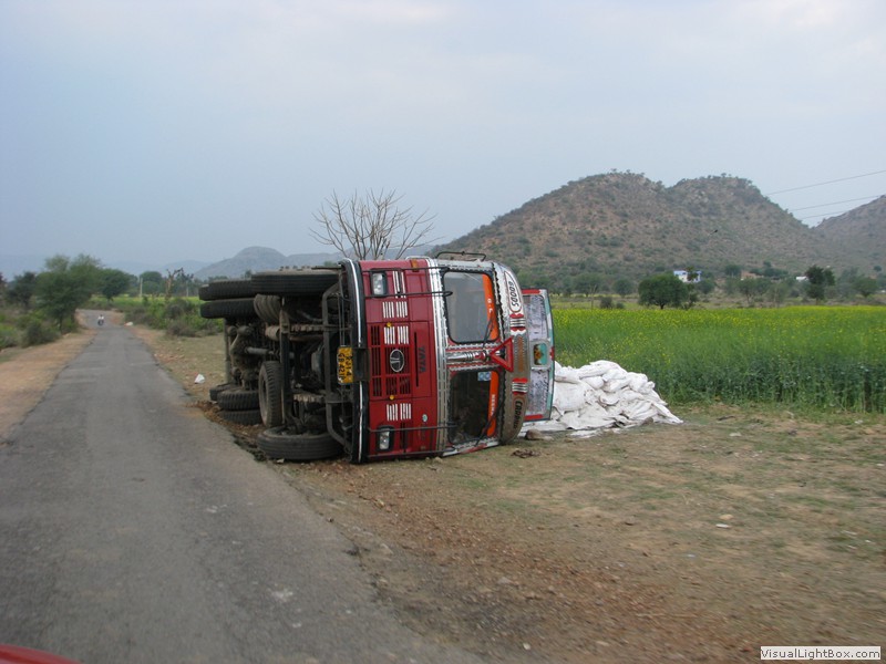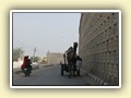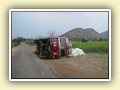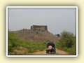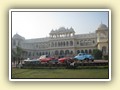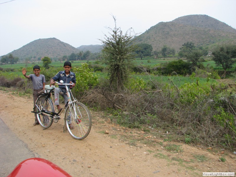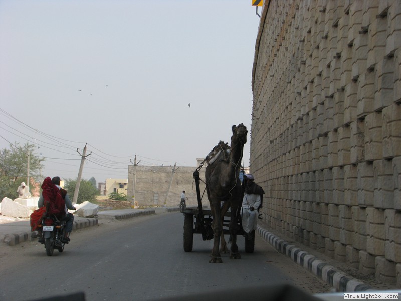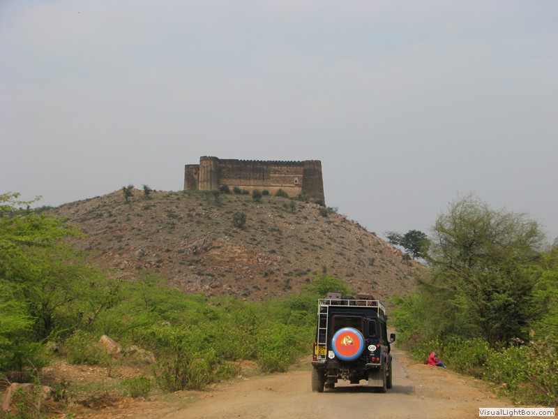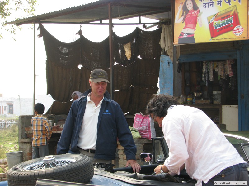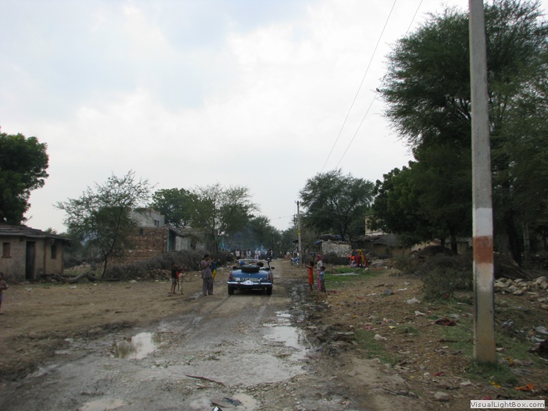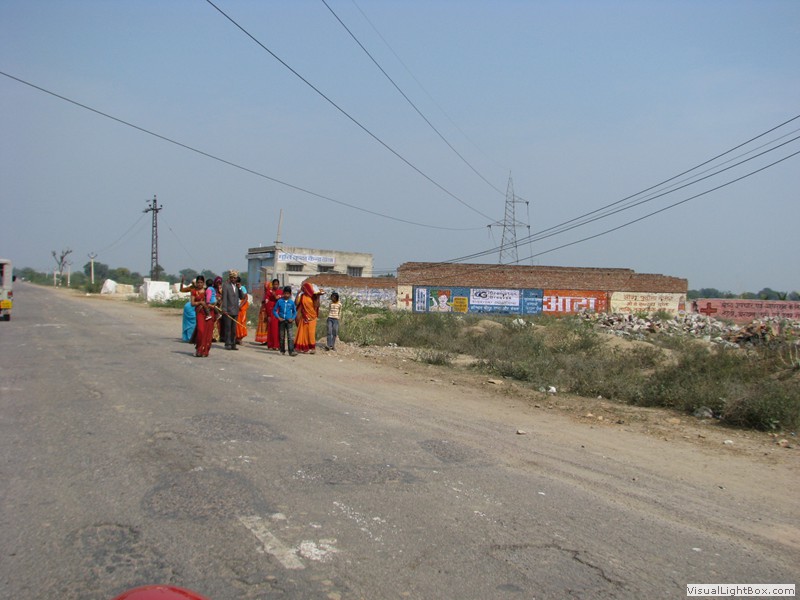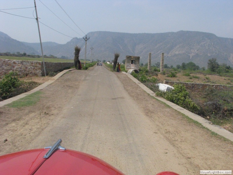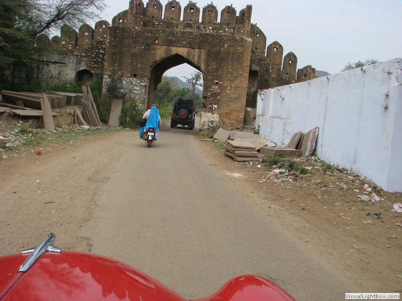 Unterwegs hielten wir unplanmässig an einer Kultusstätte an. Ein Palast aus dem 16. Jahrhundert zog unser Interesse an und so besuchten wir diesen. Ein sehr schöner Palast. Die Bauart erinnerte an römische Städte, aber seht selber auf den Bildern. Als kleines Schmankerl noch eine Info für die Damen: just heute wurden hier Fotos von den neuen Louis Vuitton Taschen gemacht… Nach diesem Stopp war meine Tankanzeige plötzlich auf null. Ich will hier nicht jemanden verdächtigen, komisch war es alleweil. In der Hoffnung es bis zur nächsten Tankstelle zu schaffen fuhren wir weiter. Es reichte nicht. Keine Panik auf der Titanic, den ich hatte einen vollen 10 Liter Kanister dabei und schon bald schnurrte der Motor wieder. Im nächsten Dorf passierte es dann. Ich war einen kurzen Moment unaufmerksam und schon riss ich ein Blinkerlicht ab. Nein, nicht meines, das eines Autos eines Inders. Kurze Aufregung im Dorf, sofort viele Leute vor Ort. Der Fahrer reagierte jedoch ganz ruhig, was auch gut war. Die Inder haben, vielleicht habe ich das schon mal erwähnt, eine Mob-Mentalität und es kann sehr schnell aus den Fugen geraten. 500 Rupien (ca. 10 Franken) wechselten den Besitzer und die Sache war erledigt. 2 Kilometer weiter die Tankstelle. Ich tankte voll, lies auch den Reservekanister wieder auffüllen. Als ich diesen im Kofferraum verstaute nutzte der Tankwart die Gelegenheit um einem Motorrad den Tank zu füllen. Natürlich der Betrag auf der Anzeige verschwunden. Er verlangte 5000 Rupien, was allein schon unmöglich ist, denn das wären mehr als 80 Liter. Ich hatte keine Lust da zu streiten, denn auch hier war schon eine ganze Menge Leute versammelt. Ich hoffe er investiert das extra Geld in etwas vernünftiges…