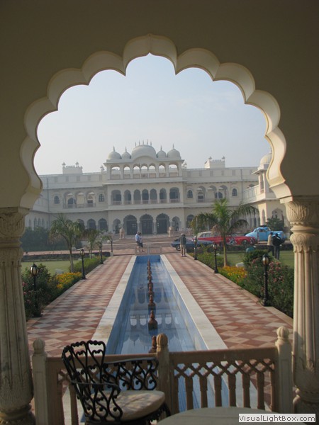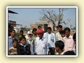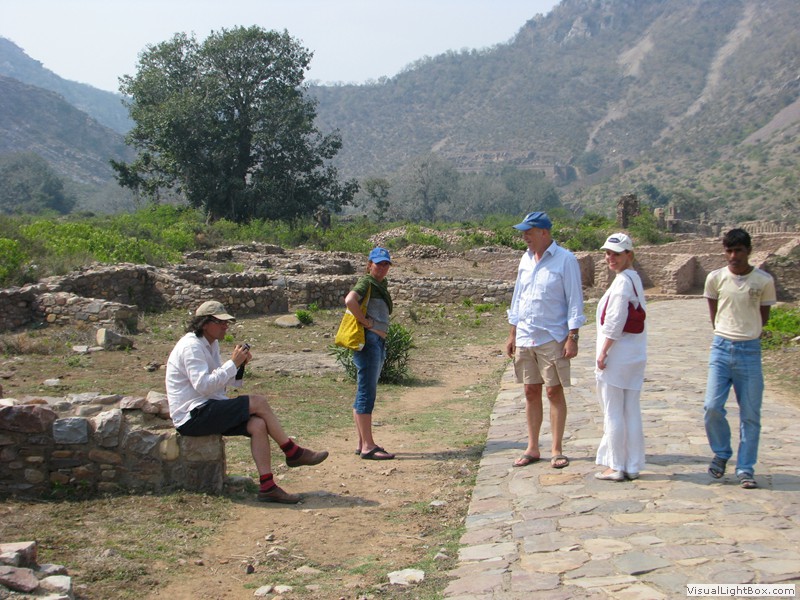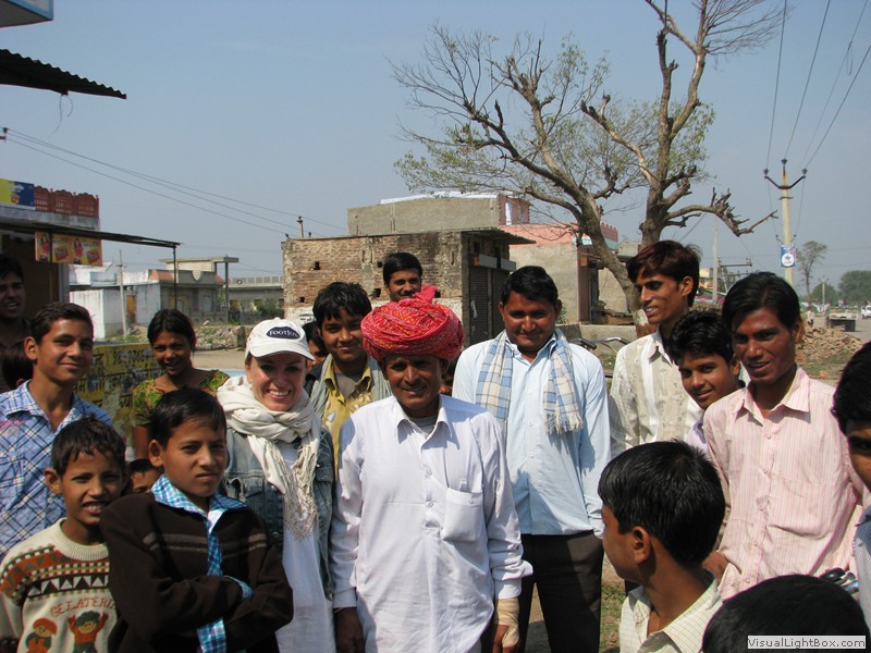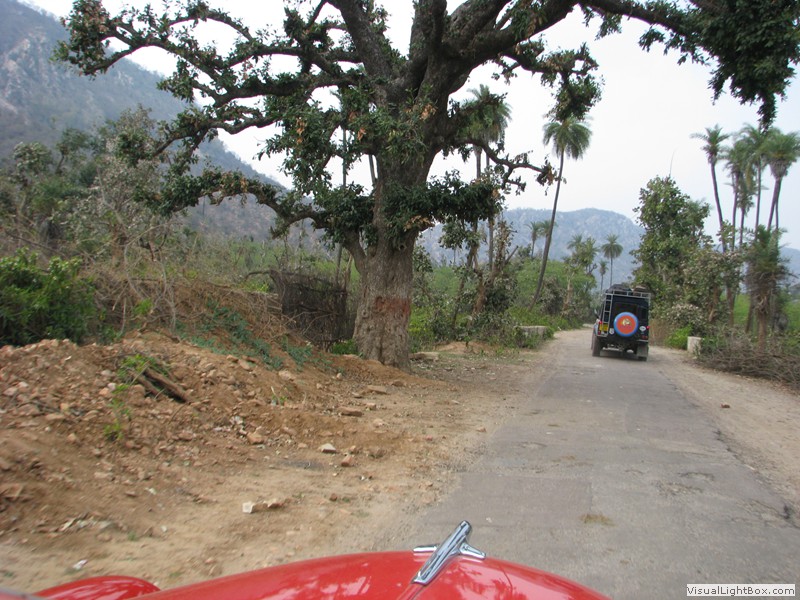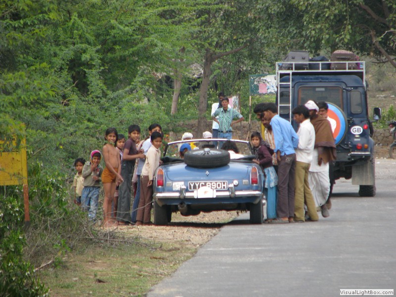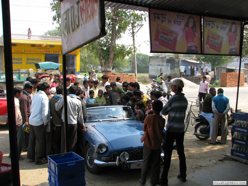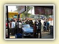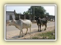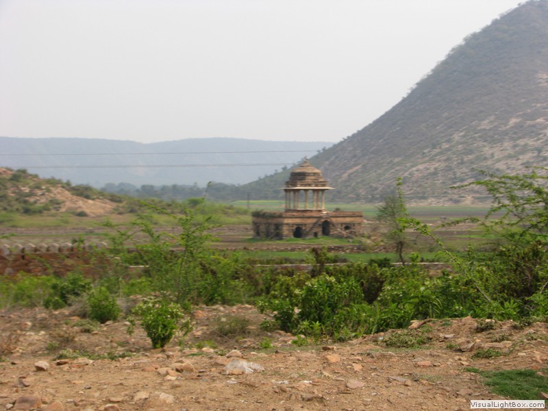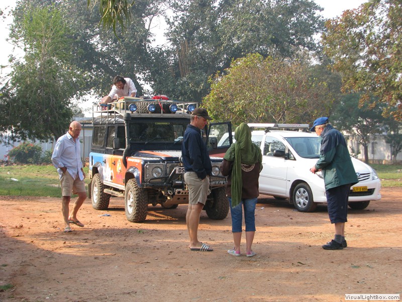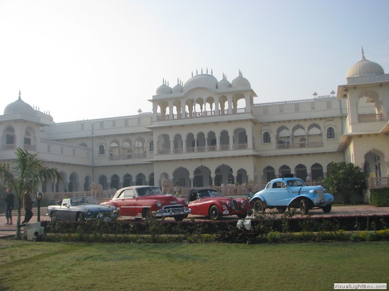 Unterwegs hielten wir unplanmässig an einer Kultusstätte an. Ein Palast aus dem 16. Jahrhundert zog unser Interesse an und so besuchten wir diesen. Ein sehr schöner Palast. Die Bauart erinnerte an römische Städte, aber seht selber auf den Bildern. Als kleines Schmankerl noch eine Info für die Damen: just heute wurden hier Fotos von den neuen Louis Vuitton Taschen gemacht… Nach diesem Stopp war meine Tankanzeige plötzlich auf null. Ich will hier nicht jemanden verdächtigen, komisch war es alleweil. In der Hoffnung es bis zur nächsten Tankstelle zu schaffen fuhren wir weiter. Es reichte nicht. Keine Panik auf der Titanic, den ich hatte einen vollen 10 Liter Kanister dabei und schon bald schnurrte der Motor wieder. Im nächsten Dorf passierte es dann. Ich war einen kurzen Moment unaufmerksam und schon riss ich ein Blinkerlicht ab. Nein, nicht meines, das eines Autos eines Inders. Kurze Aufregung im Dorf, sofort viele Leute vor Ort. Der Fahrer reagierte jedoch ganz ruhig, was auch gut war. Die Inder haben, vielleicht habe ich das schon mal erwähnt, eine Mob-Mentalität und es kann sehr schnell aus den Fugen geraten. 500 Rupien (ca. 10 Franken) wechselten den Besitzer und die Sache war erledigt. 2 Kilometer weiter die Tankstelle. Ich tankte voll, lies auch den Reservekanister wieder auffüllen. Als ich diesen im Kofferraum verstaute nutzte der Tankwart die Gelegenheit um einem Motorrad den Tank zu füllen. Natürlich der Betrag auf der Anzeige verschwunden. Er verlangte 5000 Rupien, was allein schon unmöglich ist, denn das wären mehr als 80 Liter. Ich hatte keine Lust da zu streiten, denn auch hier war schon eine ganze Menge Leute versammelt. Ich hoffe er investiert das extra Geld in etwas vernünftiges…