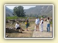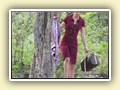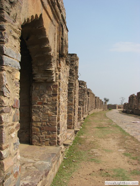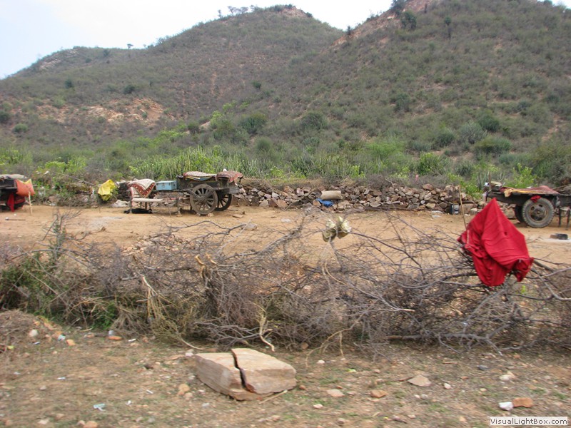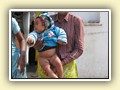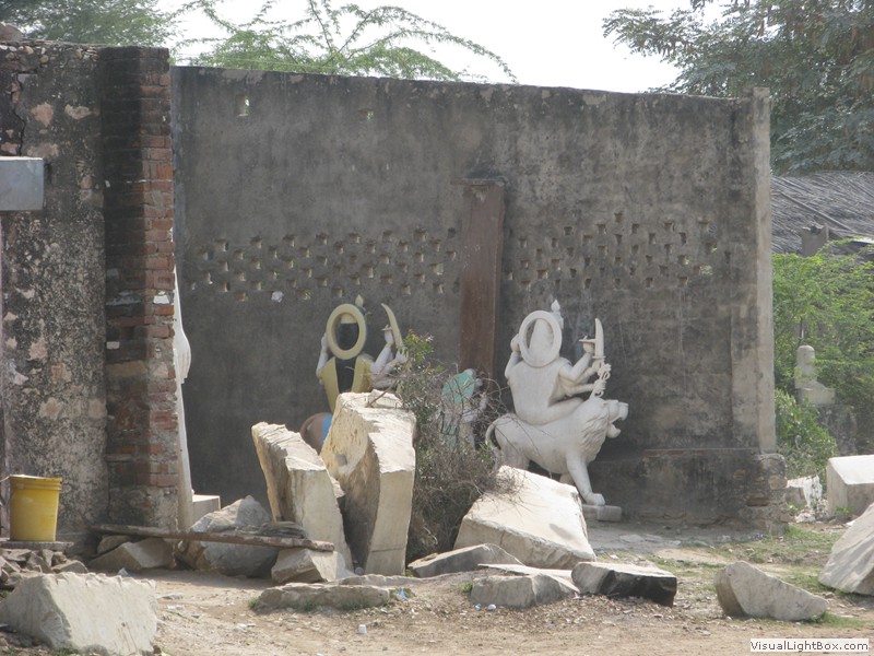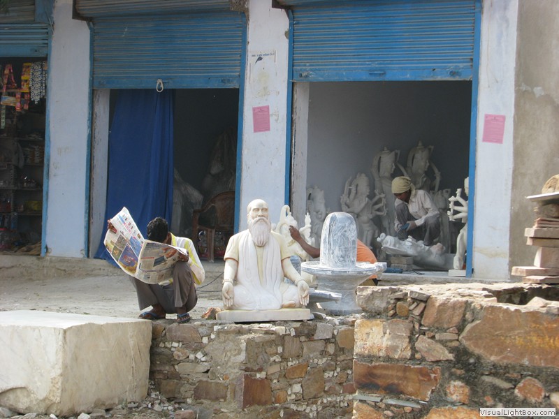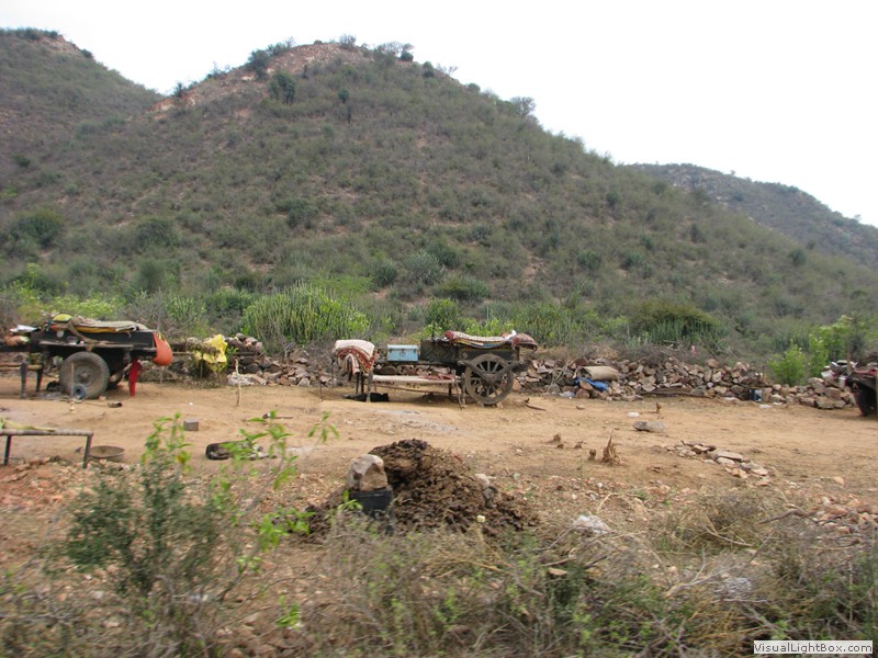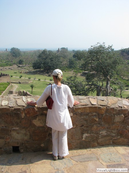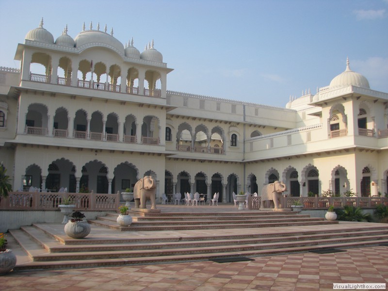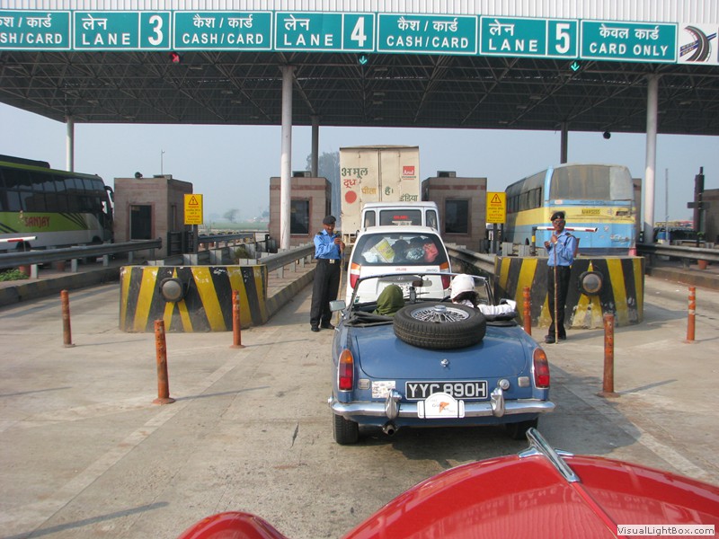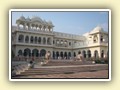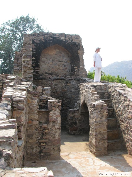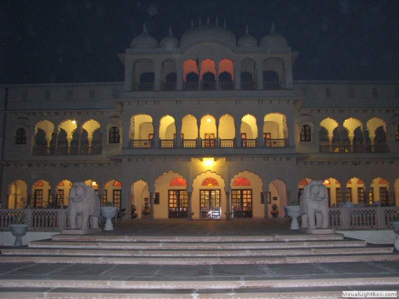 Unterwegs hielten wir unplanmässig an einer Kultusstätte an. Ein Palast aus dem 16. Jahrhundert zog unser Interesse an und so besuchten wir diesen. Ein sehr schöner Palast. Die Bauart erinnerte an römische Städte, aber seht selber auf den Bildern. Als kleines Schmankerl noch eine Info für die Damen: just heute wurden hier Fotos von den neuen Louis Vuitton Taschen gemacht… Nach diesem Stopp war meine Tankanzeige plötzlich auf null. Ich will hier nicht jemanden verdächtigen, komisch war es alleweil. In der Hoffnung es bis zur nächsten Tankstelle zu schaffen fuhren wir weiter. Es reichte nicht. Keine Panik auf der Titanic, den ich hatte einen vollen 10 Liter Kanister dabei und schon bald schnurrte der Motor wieder. Im nächsten Dorf passierte es dann. Ich war einen kurzen Moment unaufmerksam und schon riss ich ein Blinkerlicht ab. Nein, nicht meines, das eines Autos eines Inders. Kurze Aufregung im Dorf, sofort viele Leute vor Ort. Der Fahrer reagierte jedoch ganz ruhig, was auch gut war. Die Inder haben, vielleicht habe ich das schon mal erwähnt, eine Mob-Mentalität und es kann sehr schnell aus den Fugen geraten. 500 Rupien (ca. 10 Franken) wechselten den Besitzer und die Sache war erledigt. 2 Kilometer weiter die Tankstelle. Ich tankte voll, lies auch den Reservekanister wieder auffüllen. Als ich diesen im Kofferraum verstaute nutzte der Tankwart die Gelegenheit um einem Motorrad den Tank zu füllen. Natürlich der Betrag auf der Anzeige verschwunden. Er verlangte 5000 Rupien, was allein schon unmöglich ist, denn das wären mehr als 80 Liter. Ich hatte keine Lust da zu streiten, denn auch hier war schon eine ganze Menge Leute versammelt. Ich hoffe er investiert das extra Geld in etwas vernünftiges…