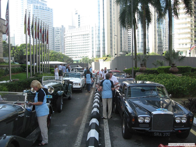 Nun ist es endlich soweit, es geht los. Alle Autos sind geputzt, gewaschen, poliert, vollgetankt. Vor dem Hotel machen wir uns bereit um zum KL-Tower zu fahren, dem offiziellen Startort.